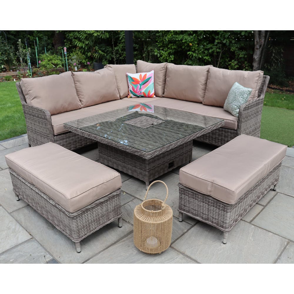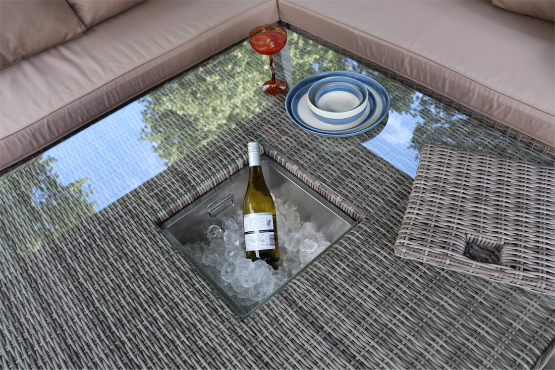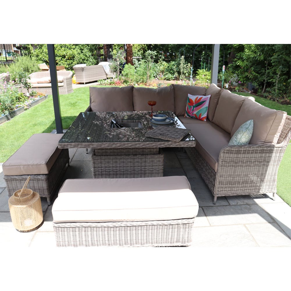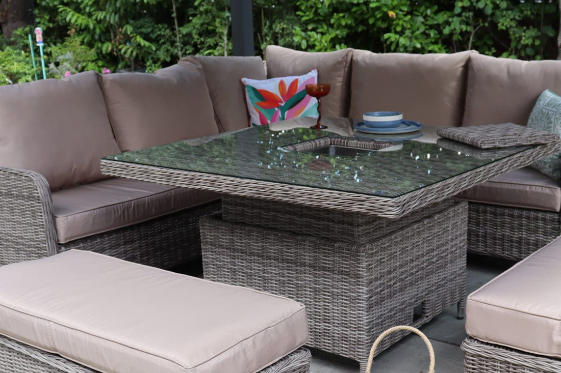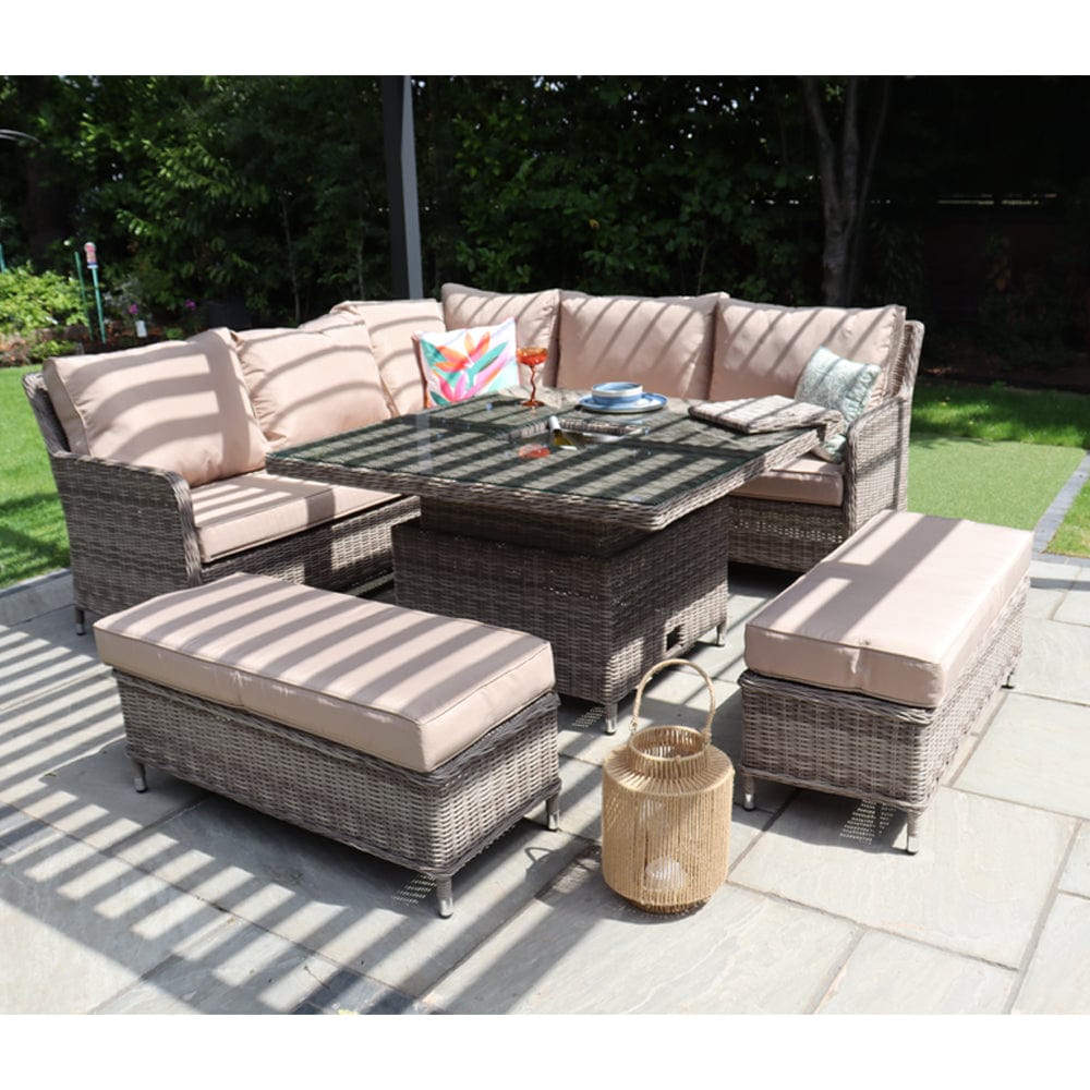 Outdoor Rattan Garden Furniture 9 Seater Corner Sofa Rising Table Set With Ice Bucket