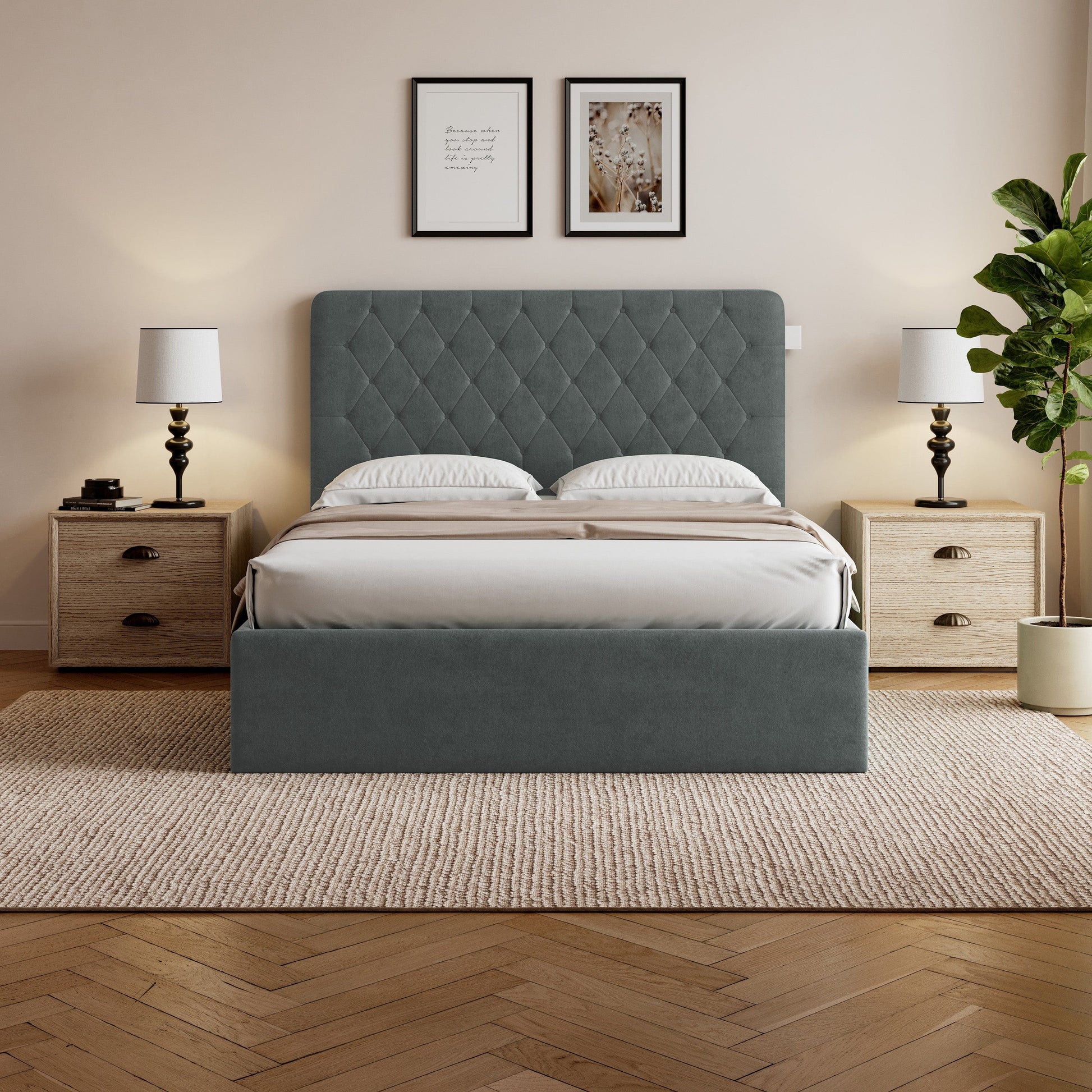 Elevate both your bedroom's aesthetics and practicality with the Pneumatic Velvet Ottoman Storage Bed. Designed with luxury and functionality in mind, this bed features a gorgeous tufted velvet headboard, adding a touch of timeless elegance to any space. Available in Double or King sizes, it offers a supportive and sturdy frame for restful nights. Beneath its sleek exterior lies ingenious lift-up storage, powered by pneumatic technology for effortless access to ample under-bed storage. Perfect for organising bedding, clothing, or other essentials, it’s the ideal solution for creating a clutter-free sanctuary. Combining plush comfort, exceptional design, and smart functionality, this bed is not just a place to sleep but a statement piece for your home.