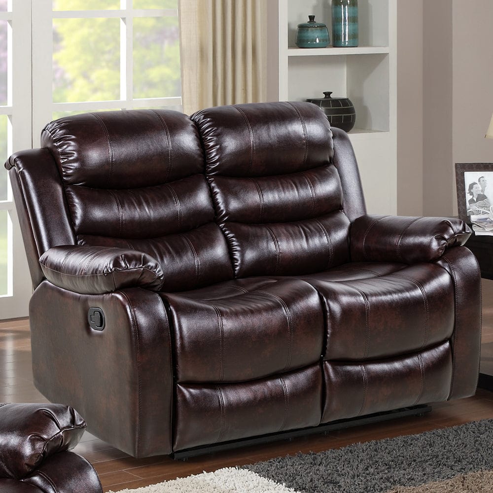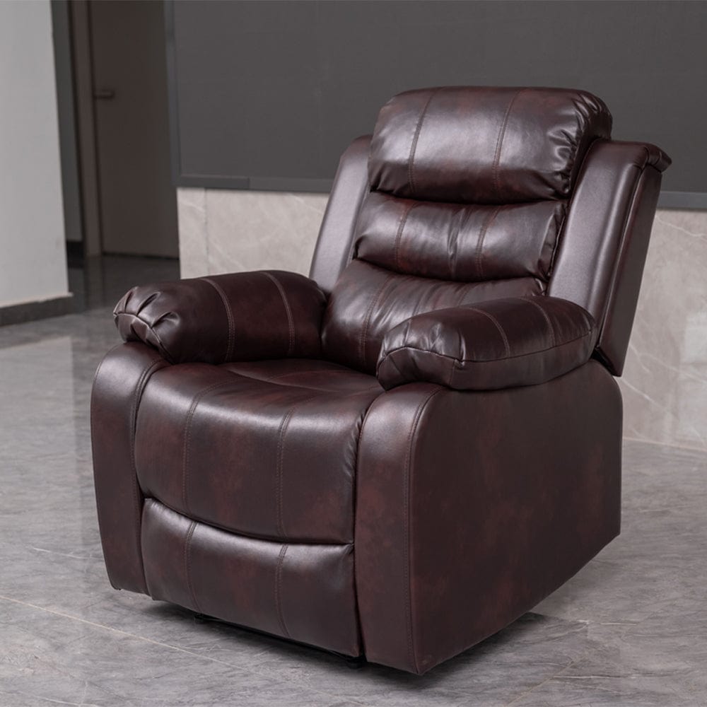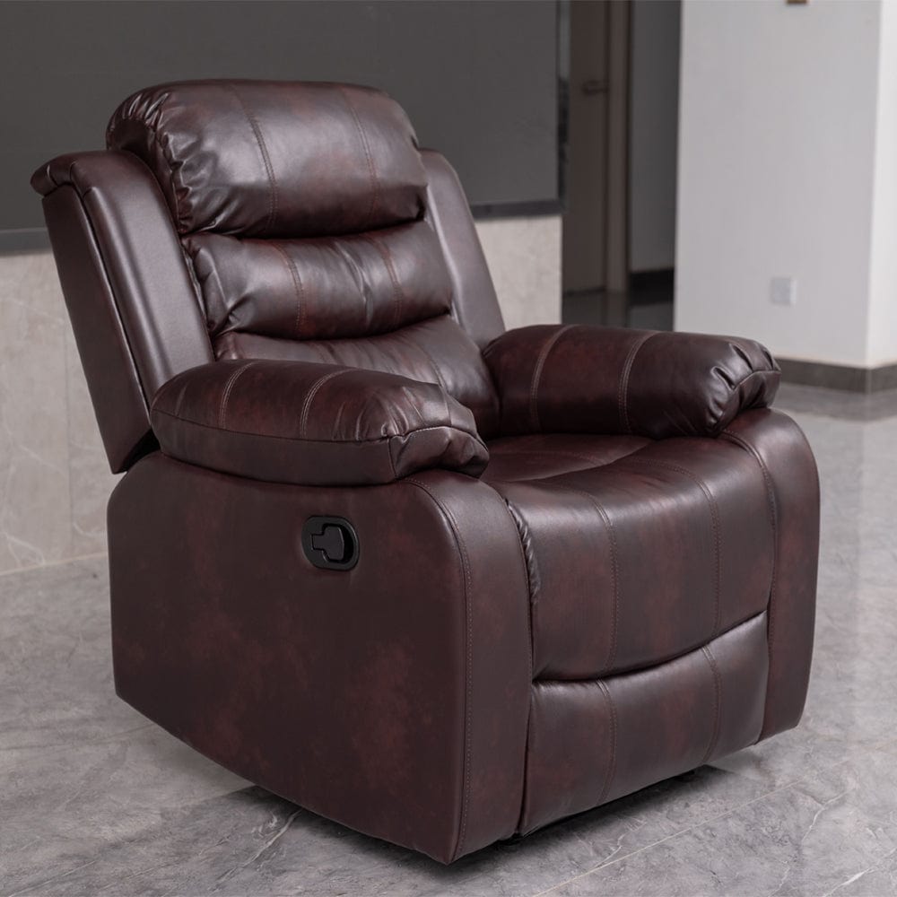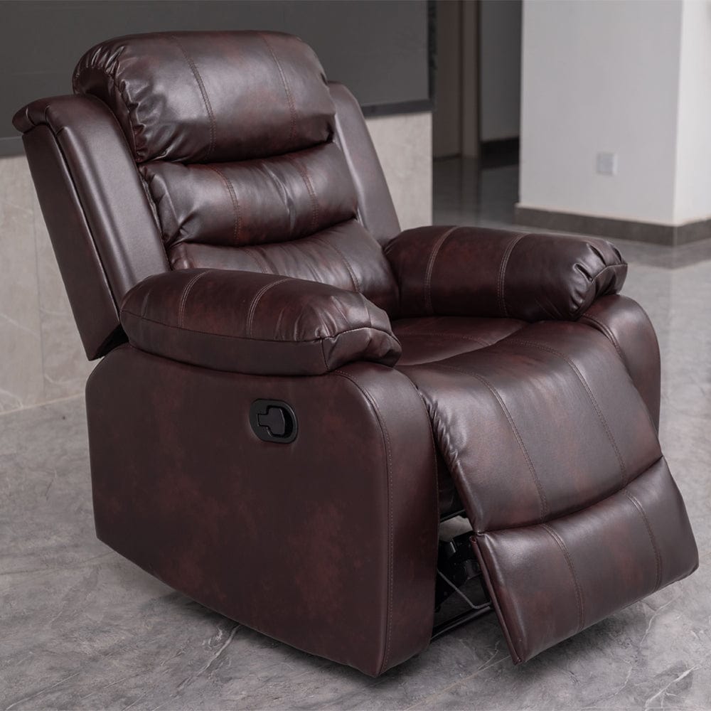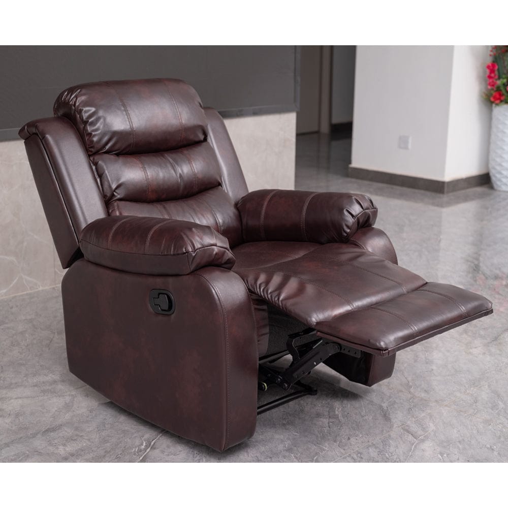 PU Leather Brown Manual Recliner 2 Seater Sofa / Armchair Set