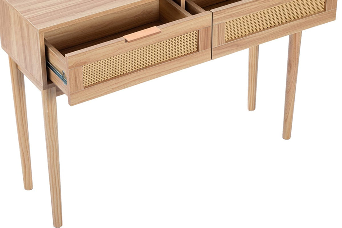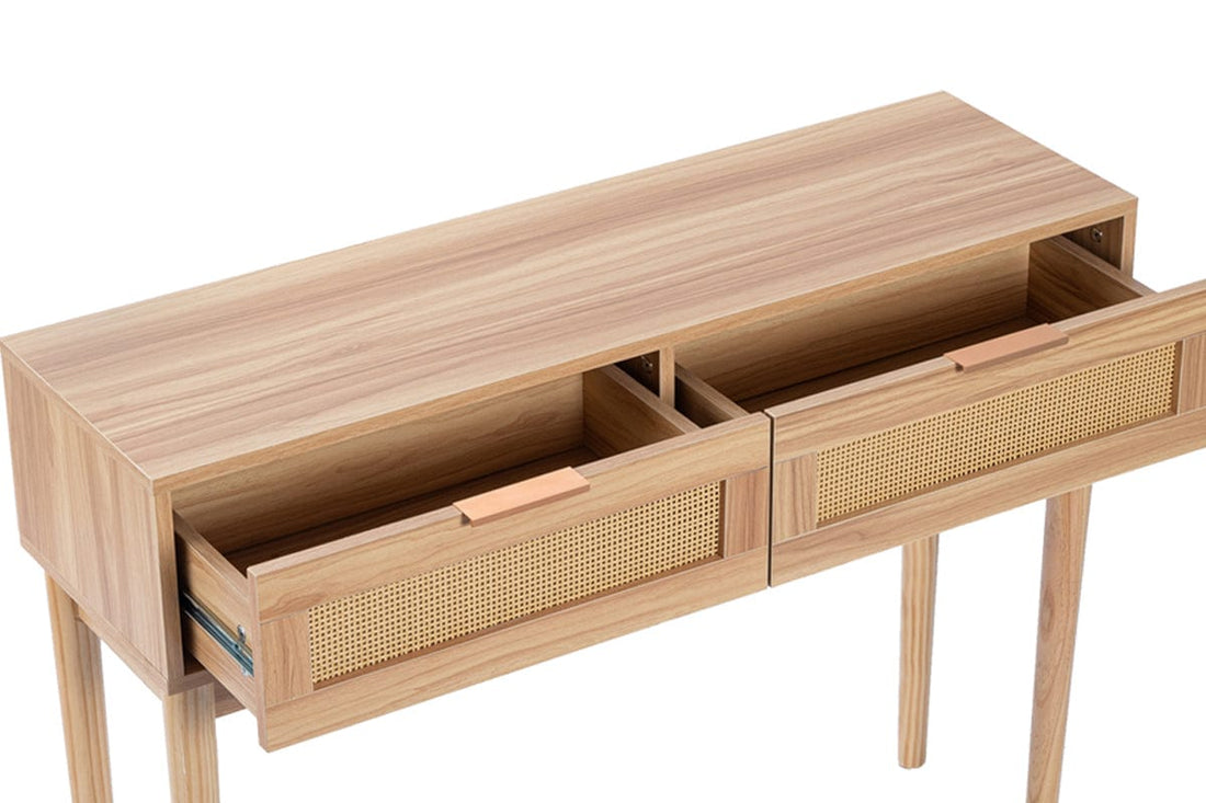 Retro Oak Rattan 2 Drawers Sideboard Side Table Console Table