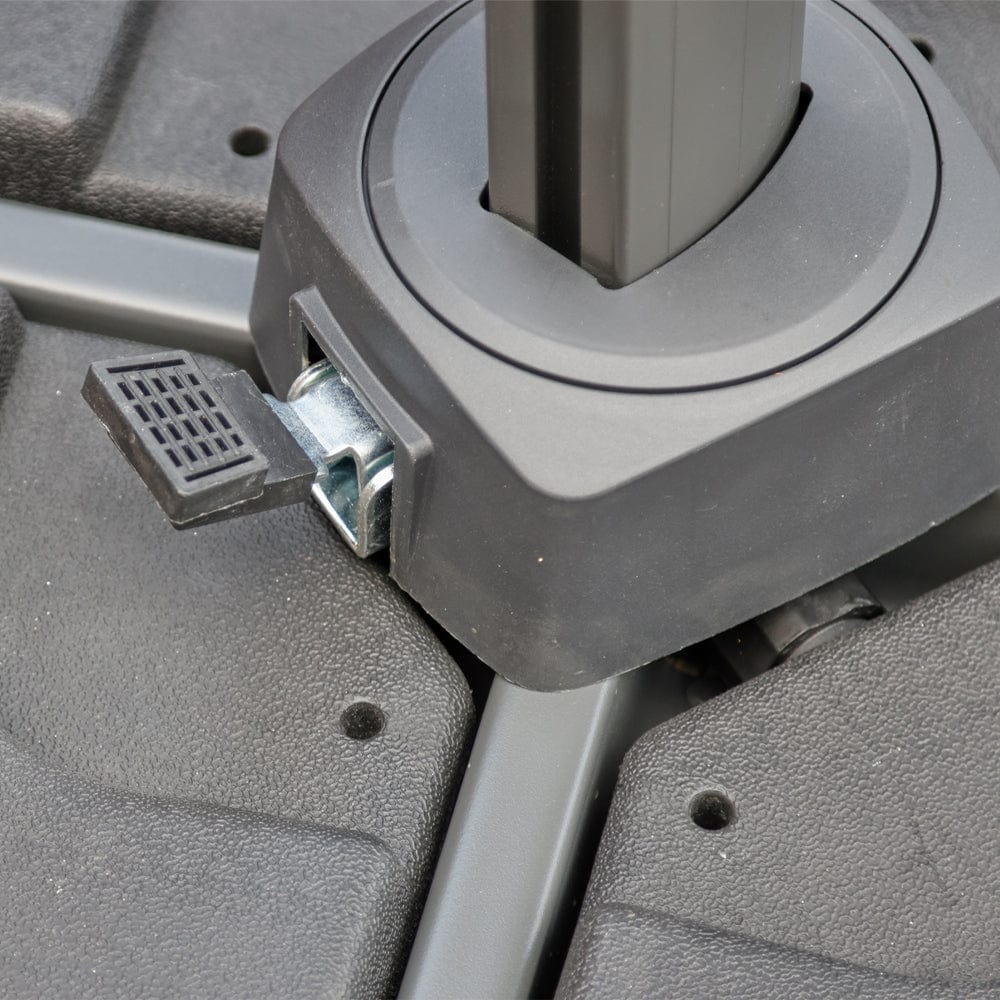 Our Roma LED cantilever parasol is a simple, elegant way to shade your outdoor space from the sun. Its built to hold up in high winds with a unique crank-and-lock tilt mechanism that extends the umbrella straight up and the fabric is made from very durable polyester for longer life and optimum support. The parasol can be tilted & rotated 360 degrees.