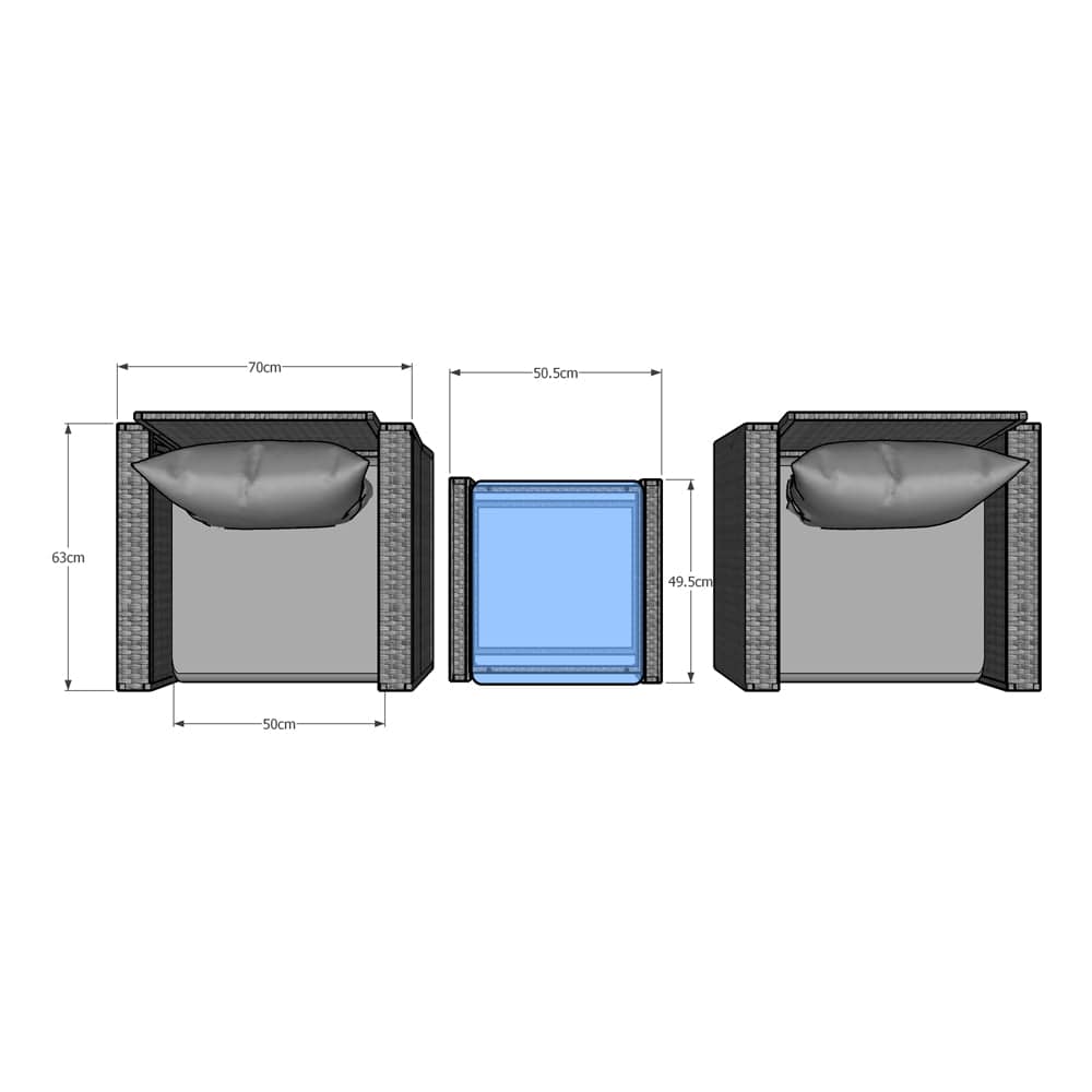 This beautiful rattan bistro set is the perfect addition to any patio, deck or garden. The sleek, modern design is perfect for any outdoor space, and the comfortable cushions make it ideal for relaxing in the sun. The set includes two chairs and a table and is made from durable, weather-resistant rattan. The grey finish is neutral and chic, making it easy to style with other outdoor furniture. This set is perfect for entertaining guests or enjoying a leisurely meal outdoors.