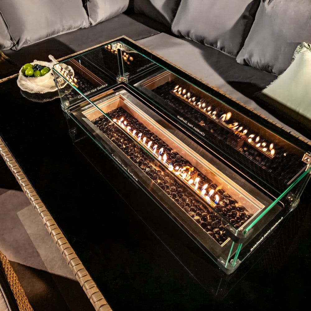 We recommend a 5kg bottle as this fits inside the table, it is not included in the set. Our firepit systems are UKCA and CE certificated and manufactured using grade SUS 304 Stainless Steel ensuring they are weatherproof and made to the highest quality.