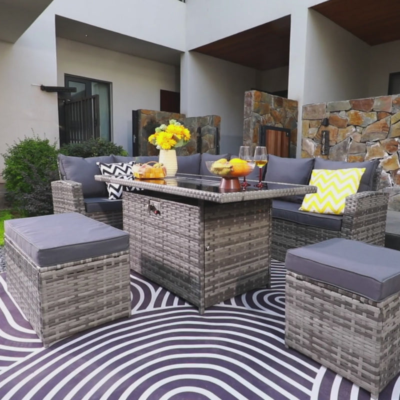 Rosen 9 Seater Rattan Garden Furniture Corner Sofa Set with Fire pit Dining Table
