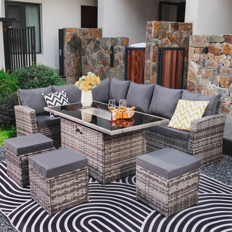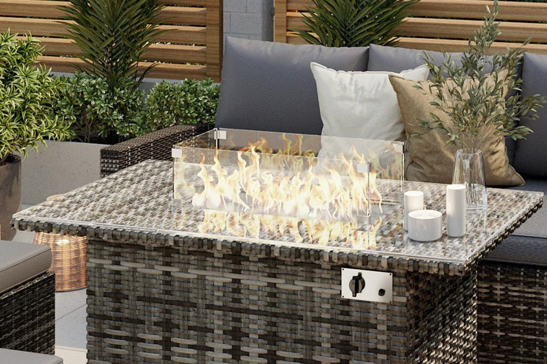 Rosen 9 Seater Fire Pit Rattan Garden Furniture Corner Dining Sofa Set