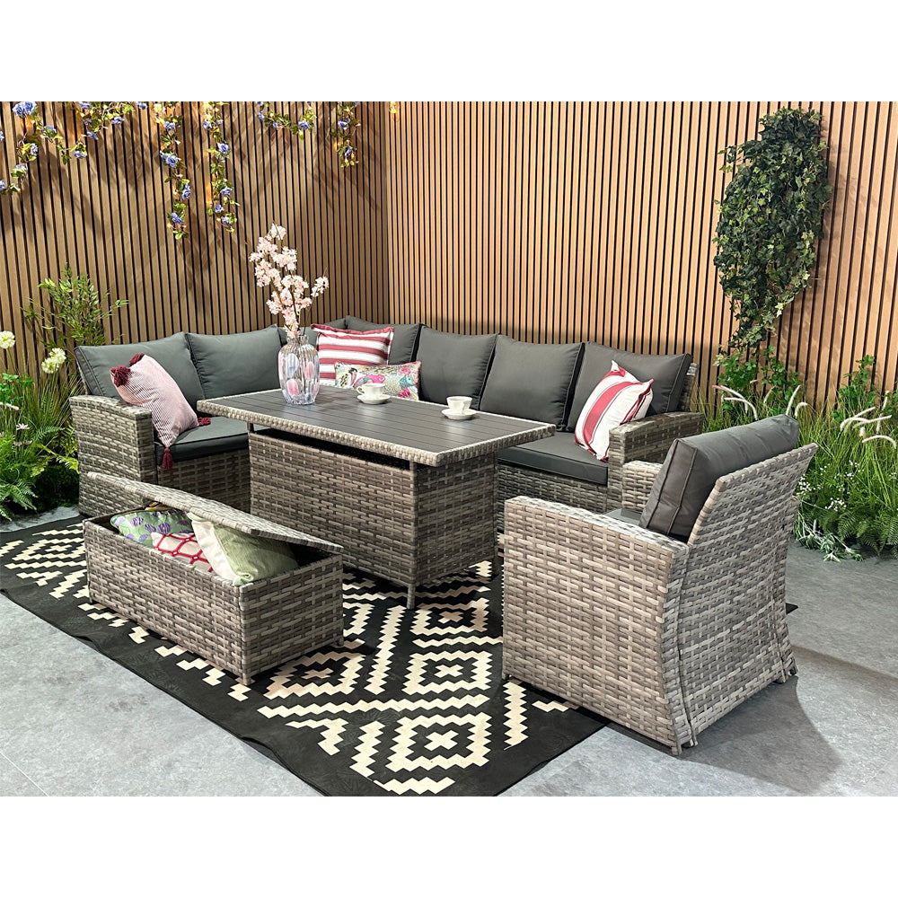 Rosen 9 Seater Rattan Corner Sofa Set With Dining Table And Armchair And Storage Bench