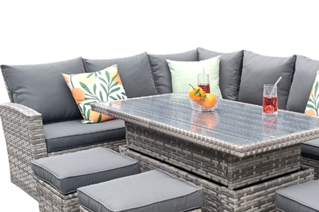 Designed to bring family and friends together, this set features a spacious lift-up table that adjusts effortlessly, adapting to casual coffee mornings or elegant al fresco dining. The nine seats, including three versatile stools, are crafted from high-quality, weather-resistant rattan, ensuring comfort and durability year-round. Whether you're hosting a summer barbecue or enjoying a quiet evening in the garden, the Rosen set elevates any occasion with its modern charm and practical design. Easy to maintain and built to last, it’s the centrepiece your garden has been waiting for.