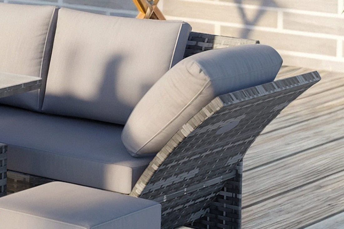Rosen 9 Seater Rattan Garden Furniture Arm Reclining Corner Sofa Set With Rising Table In Grey