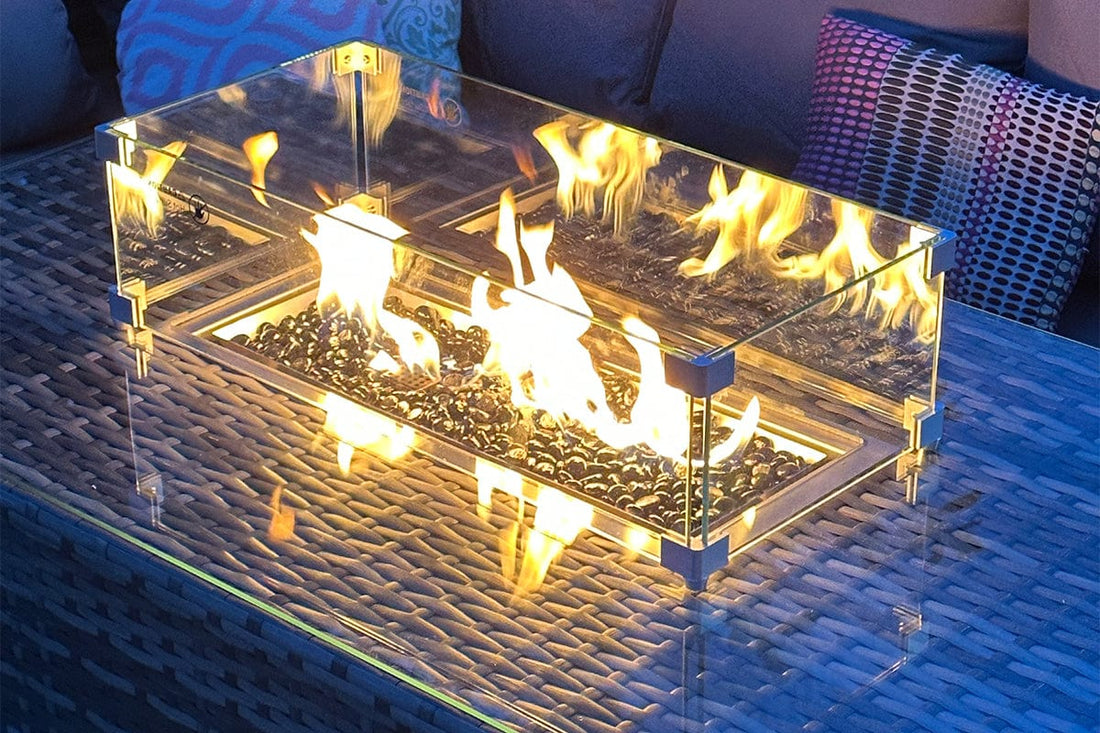 We recommend a 5kg bottle as this fits inside the table, it is not included in the set. Our firepit systems are UKCA and CE certificated and manufactured using grade SUS 304 Stainless Steel ensuring they are weatherproof and made to the highest quality.