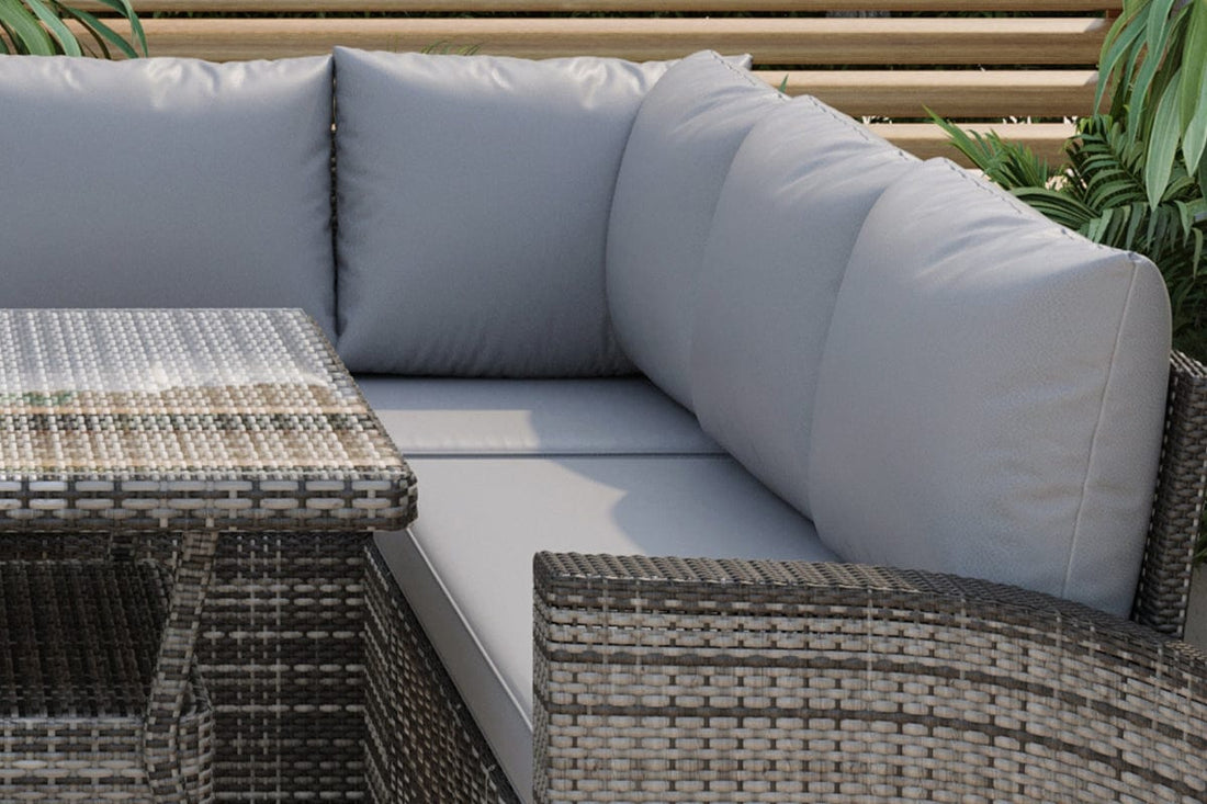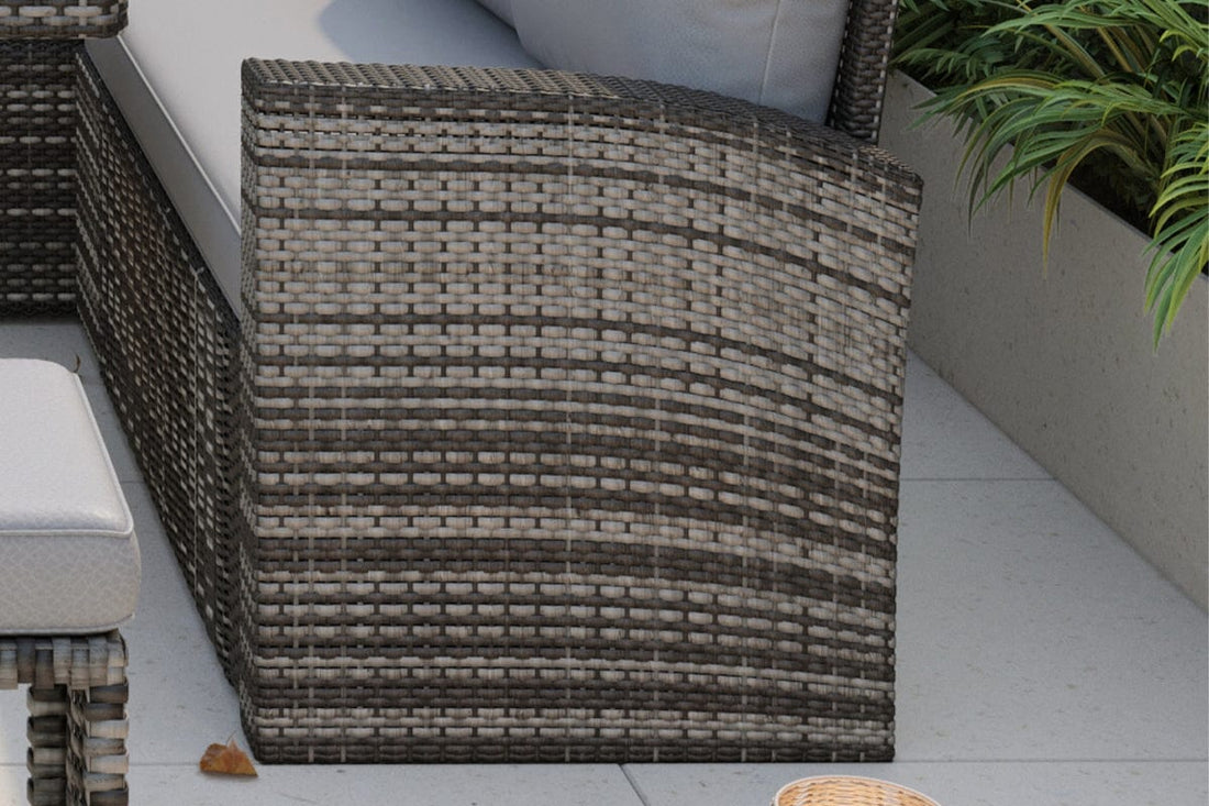 Handcrafted with a mixed-weaved rattan ensures durability, flexibility, and a unique aesthetic appeal. Indulge in the deep, plush seating designed to provide an unparalleled level of comfort. The parasol provides ample shade, making it ideal for sunny days and adding an extra layer of comfort. The contemporary grey finish of the rattan weave infuses sophistication into your outdoor area.