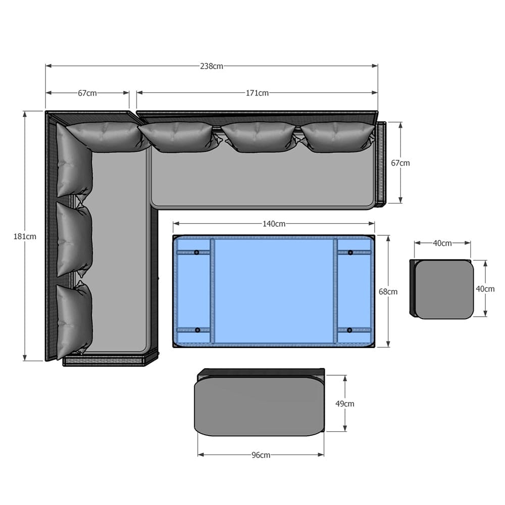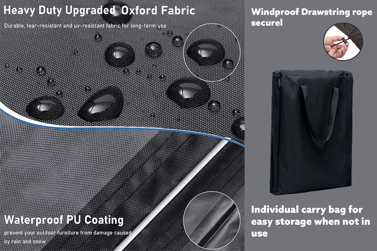 We recommend you to order with rain cover options to extend the lifespan of your garden furniture, our heavy duty rain cover are made of Oxford fabric is woven with a basketweave structure, which contributes to its strength and resilience. It is often favored for its ability to withstand regular use and resist tearing and abrasion.