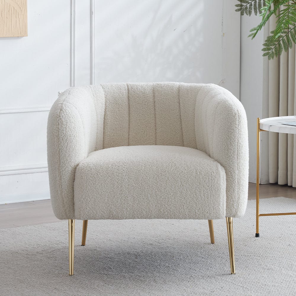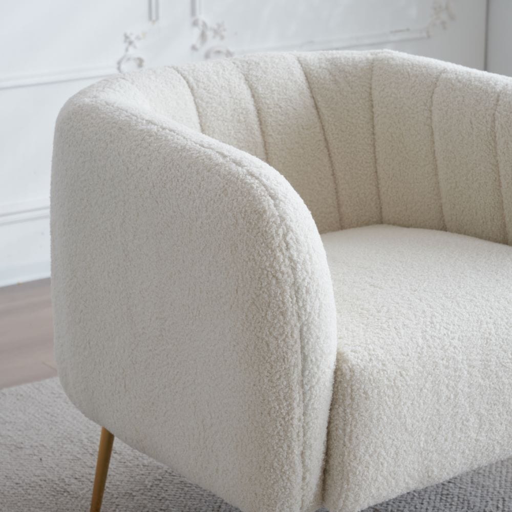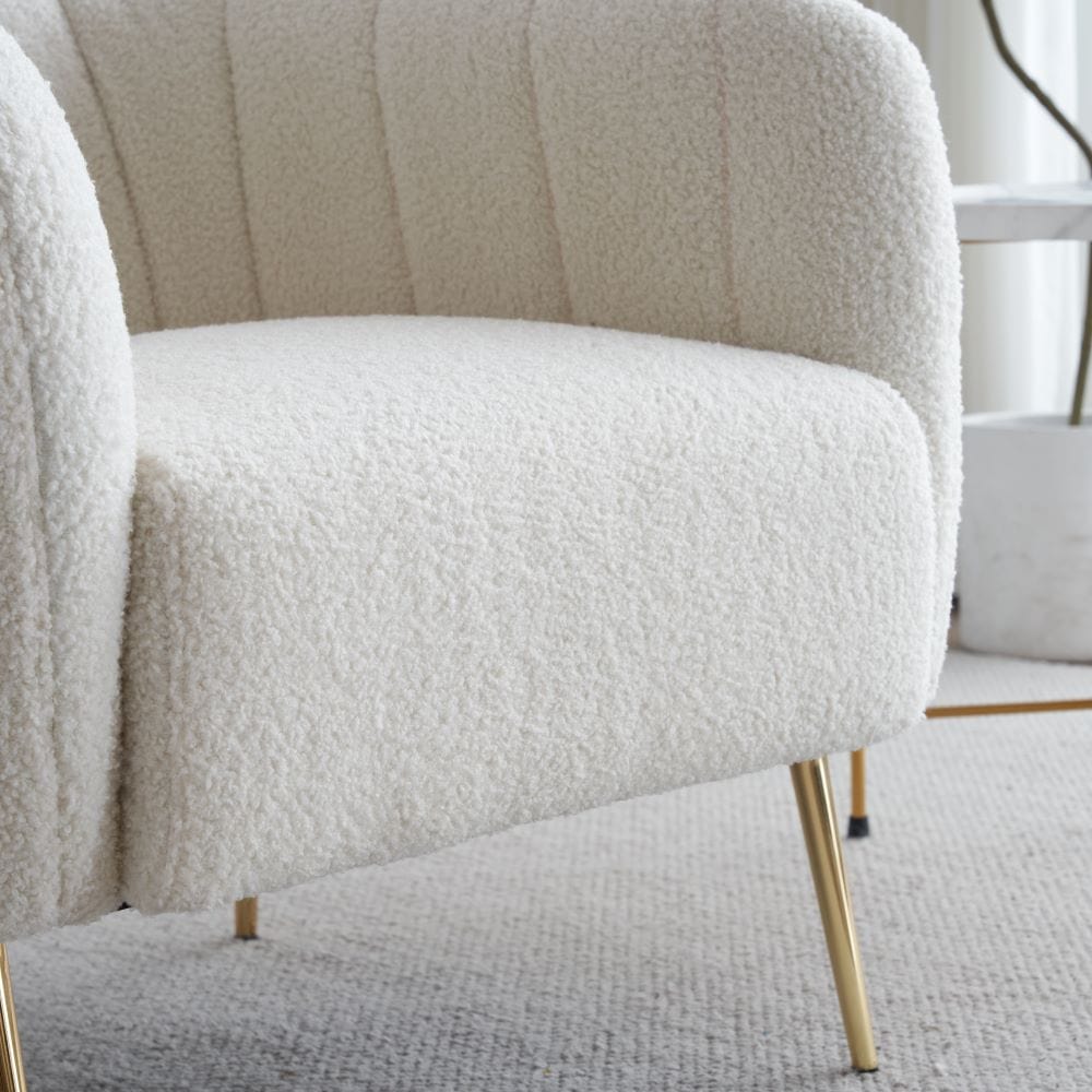 Russell Boucle Armchair Accent chair In White Teddy Fabric