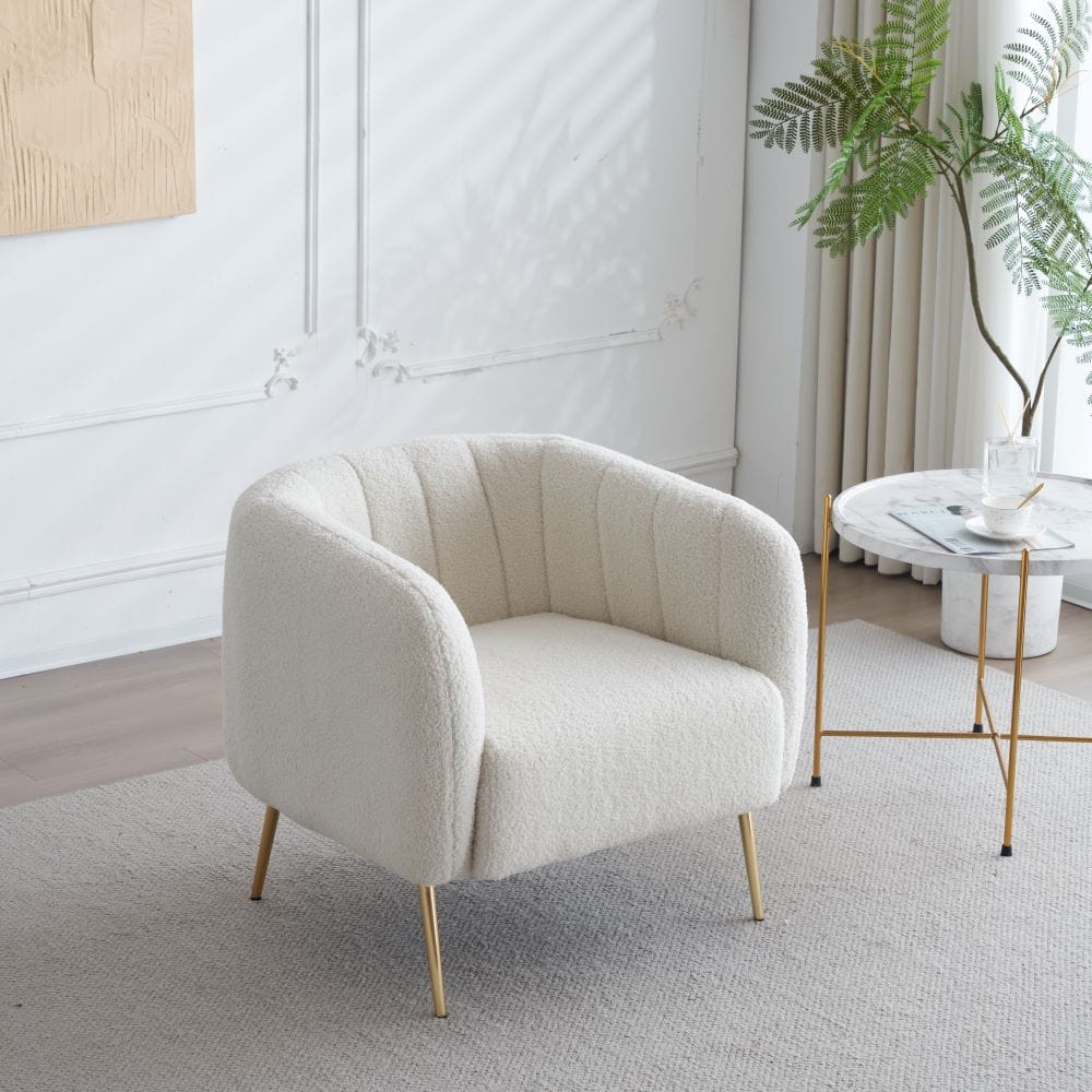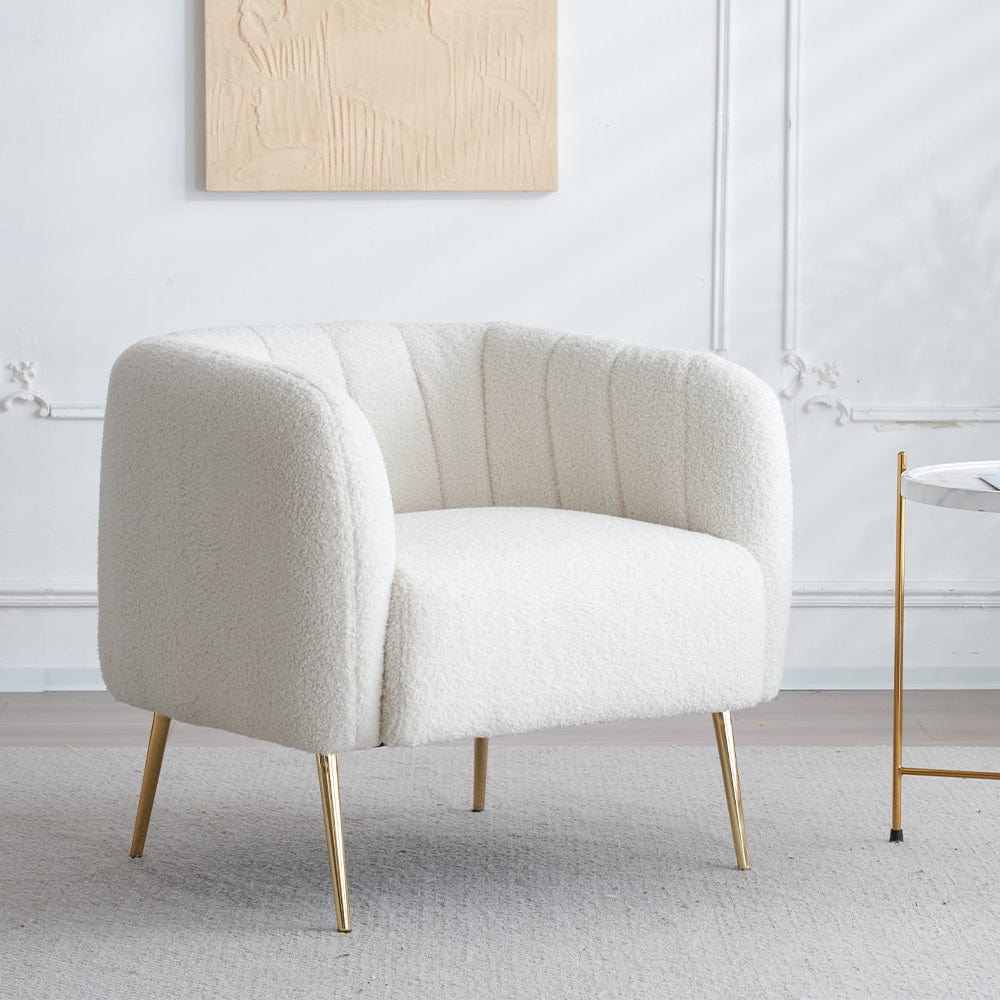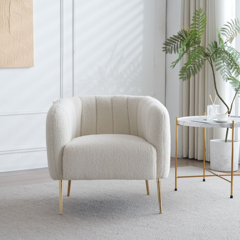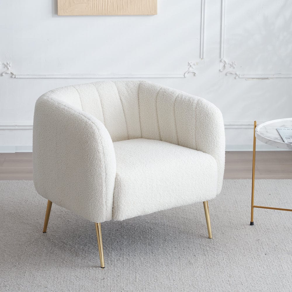 Russell Boucle Armchair Accent chair In White Teddy Fabric
