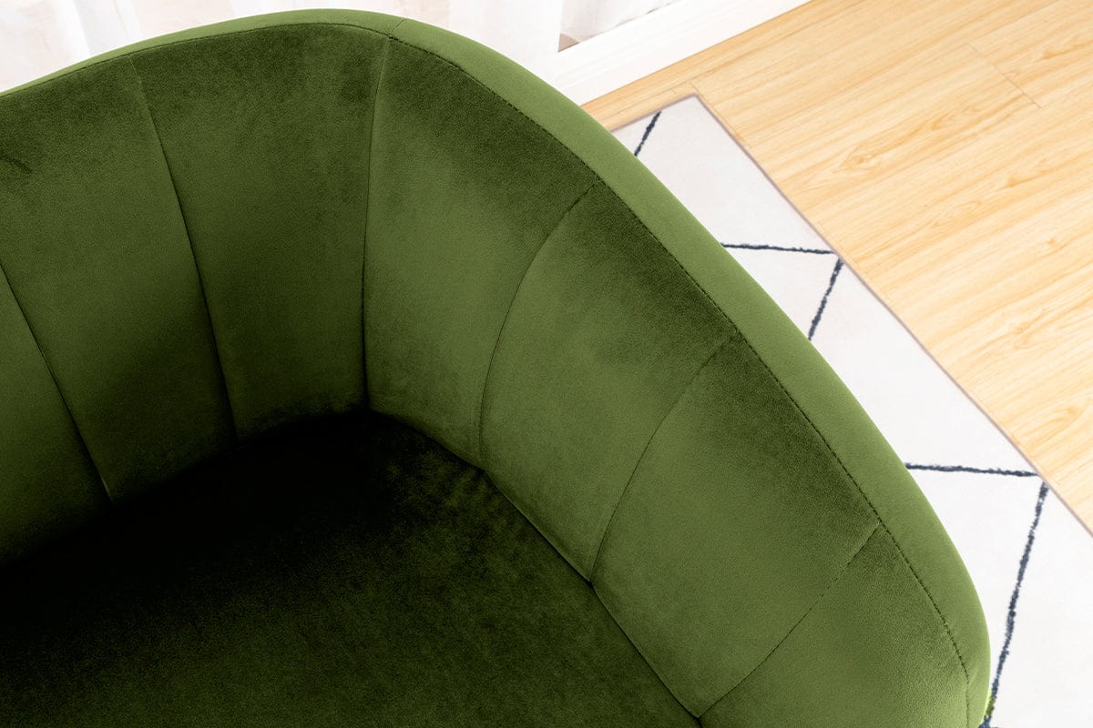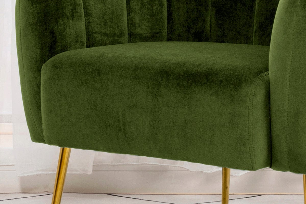 The ideal companion piece to any decor, the Russell's vine green hue radiates tranquility and eminence. Comfortably contoured seating cushions are made of high-density foam wrapped in foam-filled tight back cushions making it an ideal spot for lounging after a long day. Whether you're looking to add additional seating into the living area or revamping your personal sanctuary, the Russell Velvet Armchair has got all your needs covered with unparalleled comfort, support, and style!