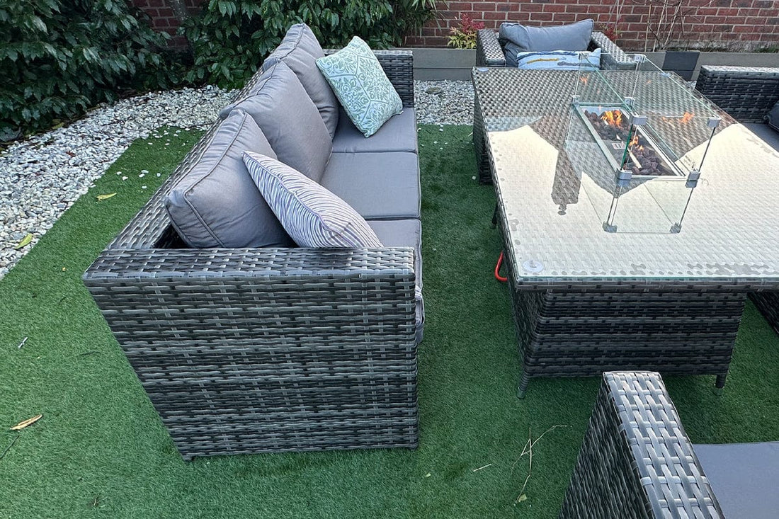 Vancouver 8 Seater Rattan Garden Furniture Sofa Fire Pit Or Raising Table set