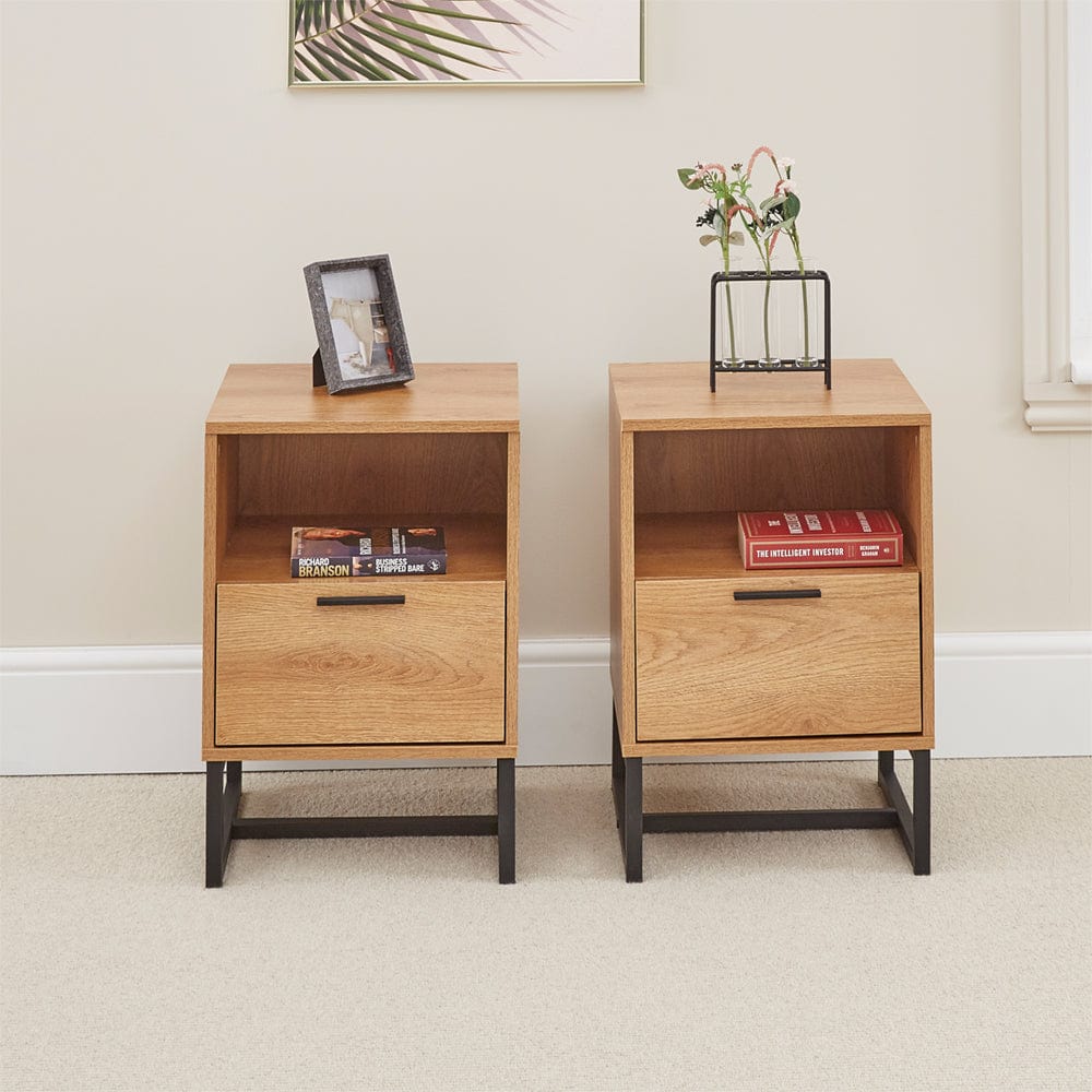 Belluno Industrial Style Set Of 2 One Drawer Bedside Tables