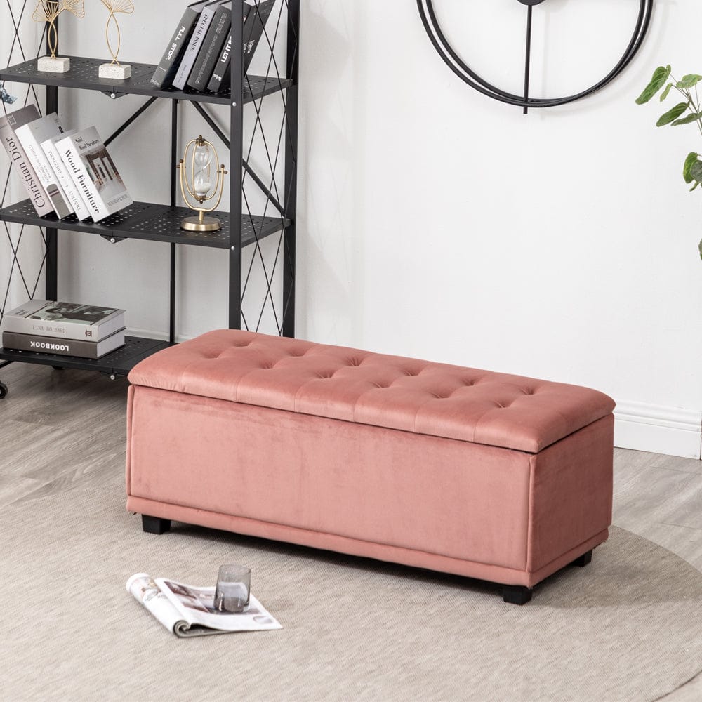 Velvet Rectangle Storage Ottoman Bench