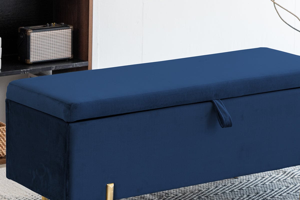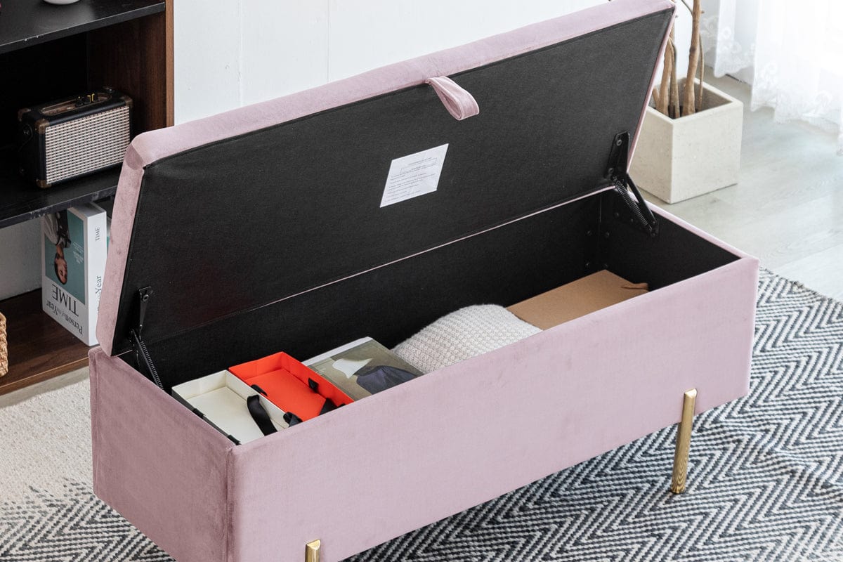Velvet Storage Ottoman With Brushed Gold Legs