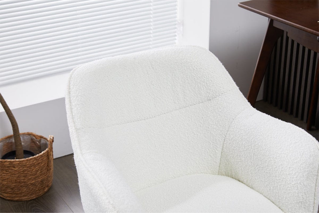 White Boucle Swivel Office Chair Armchair Adjustable Chair