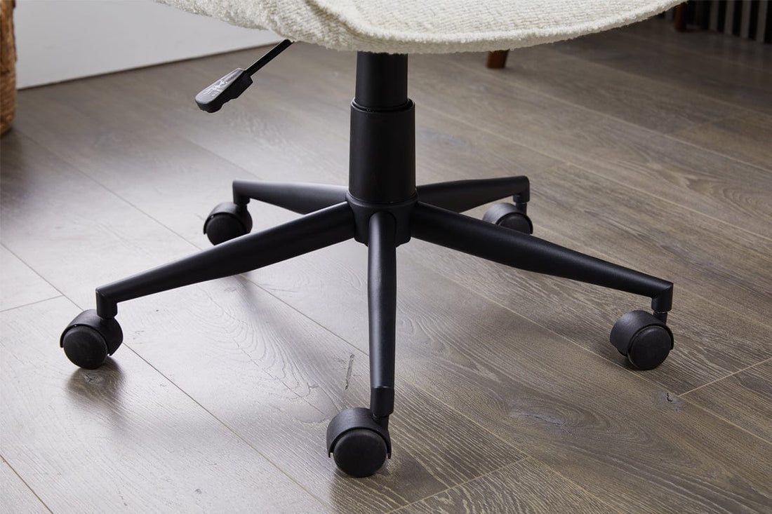This stunning chair is here to completely revolutionize your workspace, wrapping you in its wonderfully soft and textured white boucle fabric. Imagine the feeling of this luxurious material as you settle in for a productive day. It's the perfect mix of modern elegance and smart design, ready to make any office feel like a chic retreat.